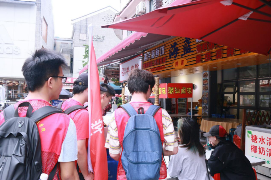 在实践中,团队成员深入西街街道内开展宣传,并向沿途的游客递上实践团队的“推普扇”以及相关的推普物资。团队成员从游客的反馈中得知,阳朔西街当地的很多人都会说普通话,甚至一些商店的店员具备有能够用外语与外国友人进行沟通交流的能力。同时实践团队成员在途径外国友人身边时,也发现一些友人能够正常使用普通话与当地商店店员进行交流。由此可见,不论是普通话还是外语,在阳朔这样的旅游景区中语言文字推广程度是比较高的。
