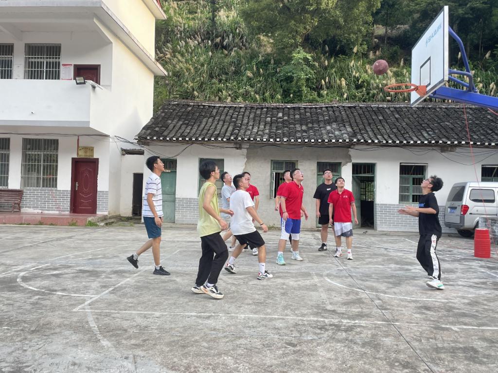 座谈交流后,实践团成员与大源村青少年开展了一场友谊和激情的“村BA”篮球赛。在篮球场上,队员们挥洒着汗水。在场边的成员们在一旁呐喊助威,村民们也纷纷加入他们,感受这场比赛热闹的氛围。