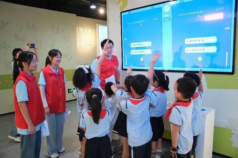 实践团成员和当地青少年进行法治知识科普互动