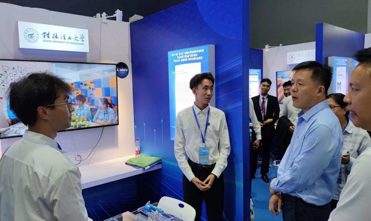 近日,由共青团中央和共青团浙江省委联合主办的第十八届“挑战杯”全国大学生课外学术科技作品竞赛“黑科技”展示活动“青年与海 强国由我”海洋主题作品展在浙江象山开幕,由环境科学与工程学院张亚楠老师指导,环境工程2022级实验班先本森同学负责的科技创新项目——《舶净-太阳能供电船载污水处理系统》获评“卫星”级作品,并受邀参加活动。本次活动共有80个项目入选参展,广西区仅我校1件项目入选。