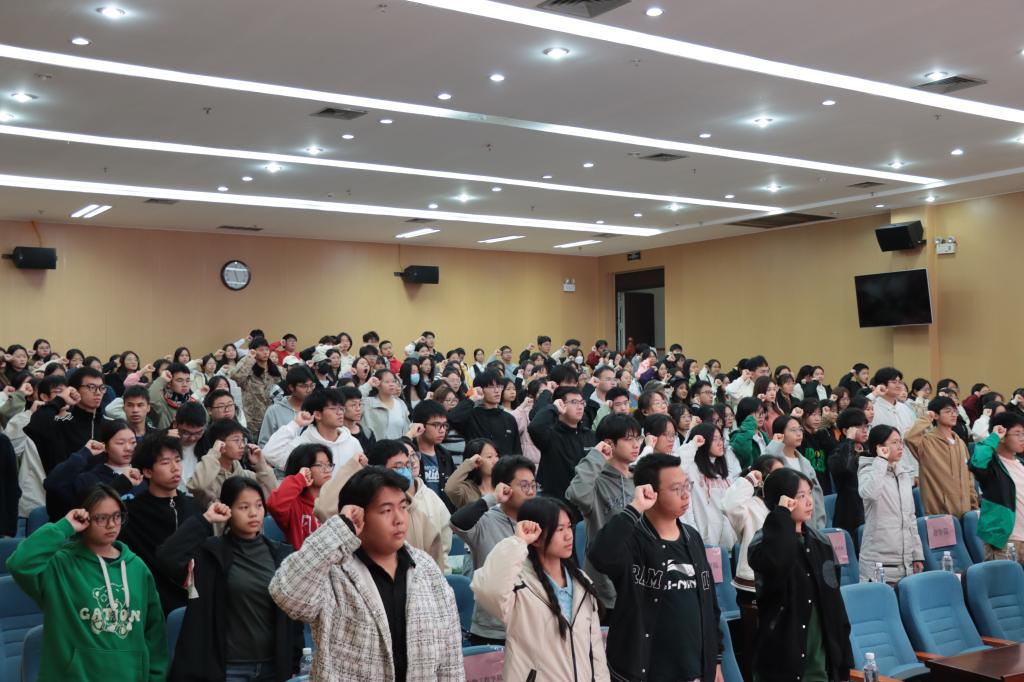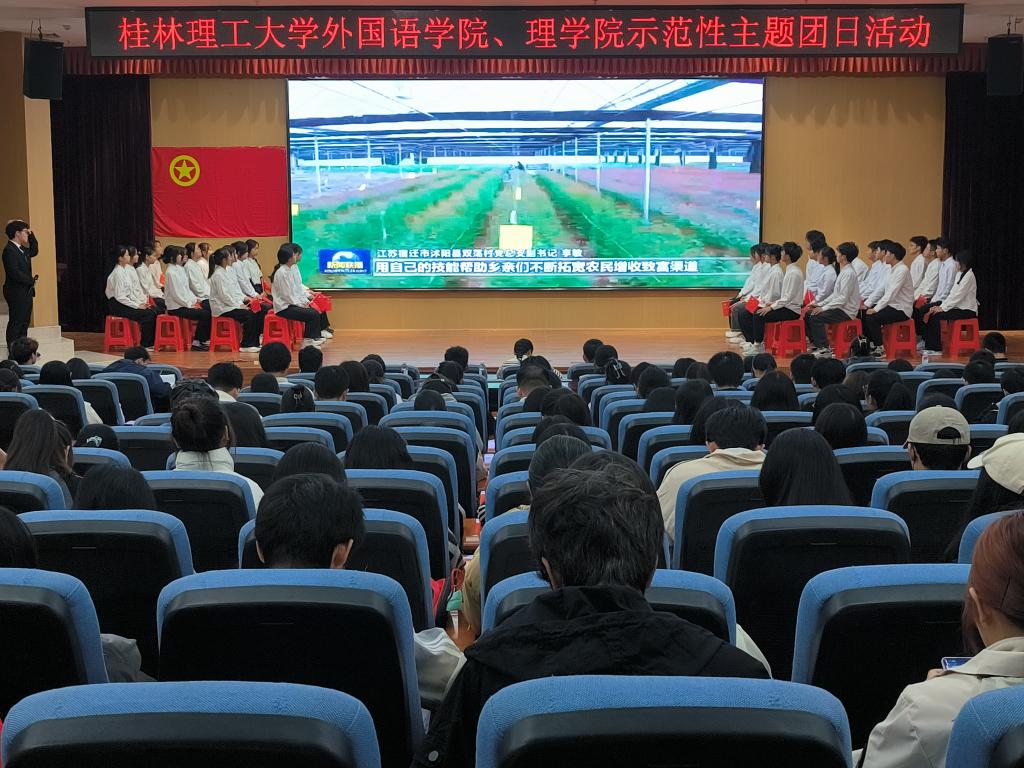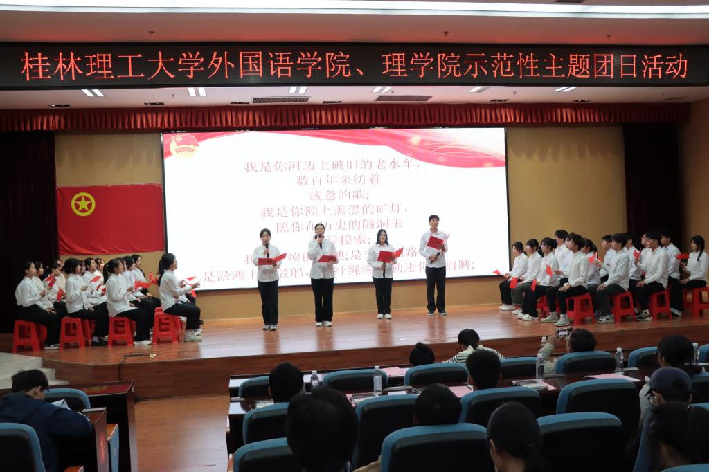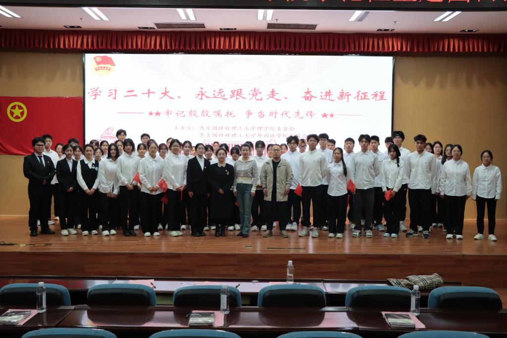 为深入学习贯彻习近平新时代中国特色社会主义思想和党的二十大精神,引导广大团员青年牢记领袖嘱托,不负殷切期望,激励引导广大团员青年坚定听党话、跟党走的理想信念,11月12日上午,外国语学院和理学院在雁山校区图书馆报告厅联合举办了“学习二十大、永远跟党走、奋进新征程——牢记殷殷嘱托,争当时代先锋”示范性主题团日活动。beats365亚洲版组宣部副部长余东东老师、理学院团委副书记彭娇娇老师、外国语学院2020级辅导员王好男老师,以及各学院团委组织部负责人、新生班长、团支书和团员青年代表参加本次活动。