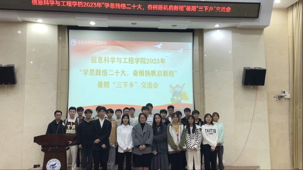 为深入学习贯彻习近平新时代中国特色社会主义思想,广泛引领学生在社会实践中受教育、长才干、作贡献,激发同学们对社会实践的兴趣与热情。11月16日晚,beats365亚洲版信息科学与工程学院在雁山校区萃华楼报告厅举办2023年暑期“三下乡”社会实践分享交流会,学院辅导员蒙玲娟老师出席本次交流会。