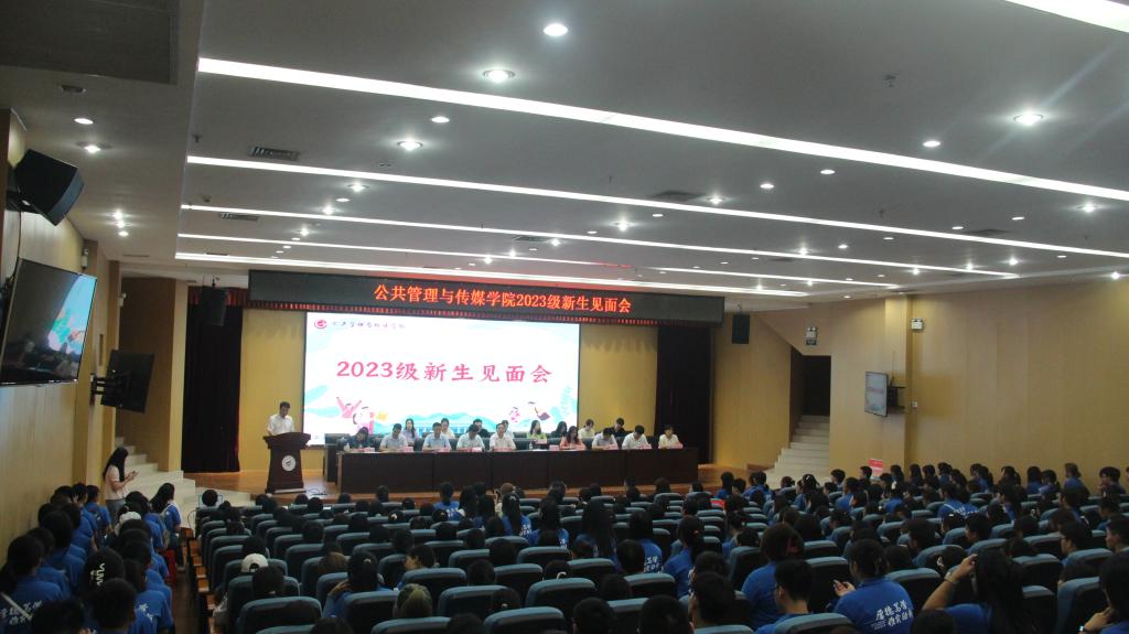 2023年9月12日,公共管理与传媒学院在雁山校区图书馆报告厅召开了2023级新生见面会。公共管理与传媒学院领导班子,公共管理与传媒学院教研室主任,2023级新生班主任、辅导员、学长组,全体2023届新生参加了会议。会议由公共管理与传媒学院党委副书记杨晓主持。