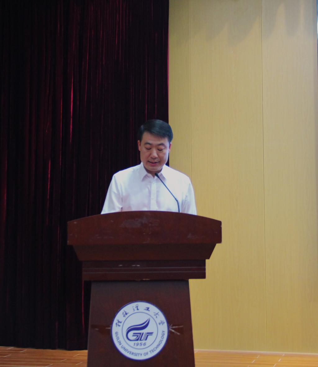 在参会人员起立奏唱高昂的校歌声中开启了2023级新生见面会。见面会开始,公共管理与传媒学院党委副书记、院长彭正波教授代表学院欢迎2023级新生的加入,对家长的信任和同学们的认可表示了感谢,对公共管理与传媒学院教学、科研、学生、校友情况进行了介绍,勉励同学们拒绝“躺平”,做到“读书治学,为人治事”。公共管理与传媒学院优秀学生代表刘英杰分享了自己“从平凡到优秀”的励志故事,做了榜样引领式发言,公共管理与传媒学院2023级新生姚怡泽代表全体新生发言做了“学在桂工、成长成才”的郑重承诺。最后,公共管理与传媒学院党委书记陆平教授以“努力成为更好的自己”为主题,希望同学们:自我比较、自我超越,提升境界、打开格局,自信自律,登峰造极。在大学最美好的青春时光里,努力成为有理想、有信念、有担当、有能力的人,努力成为德智体美劳全面发展的社会主义建设者和接班人。