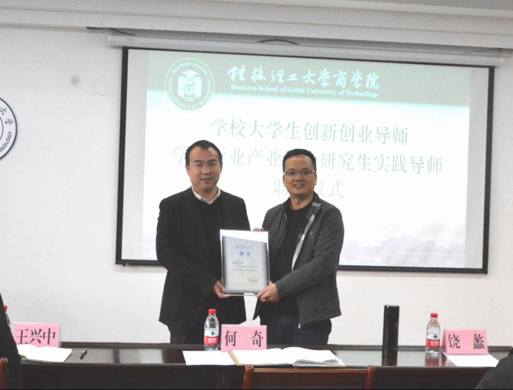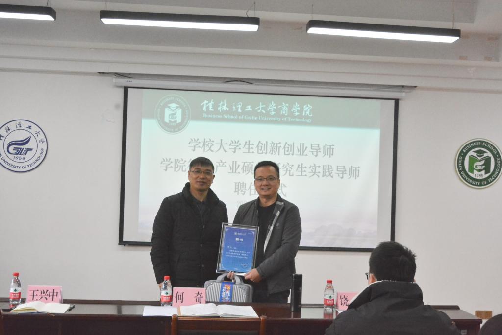 报告会上,举行了聘任何奇校友为学校大学生创新创业导师和商学院行业产业研究生实践导师受聘仪式。