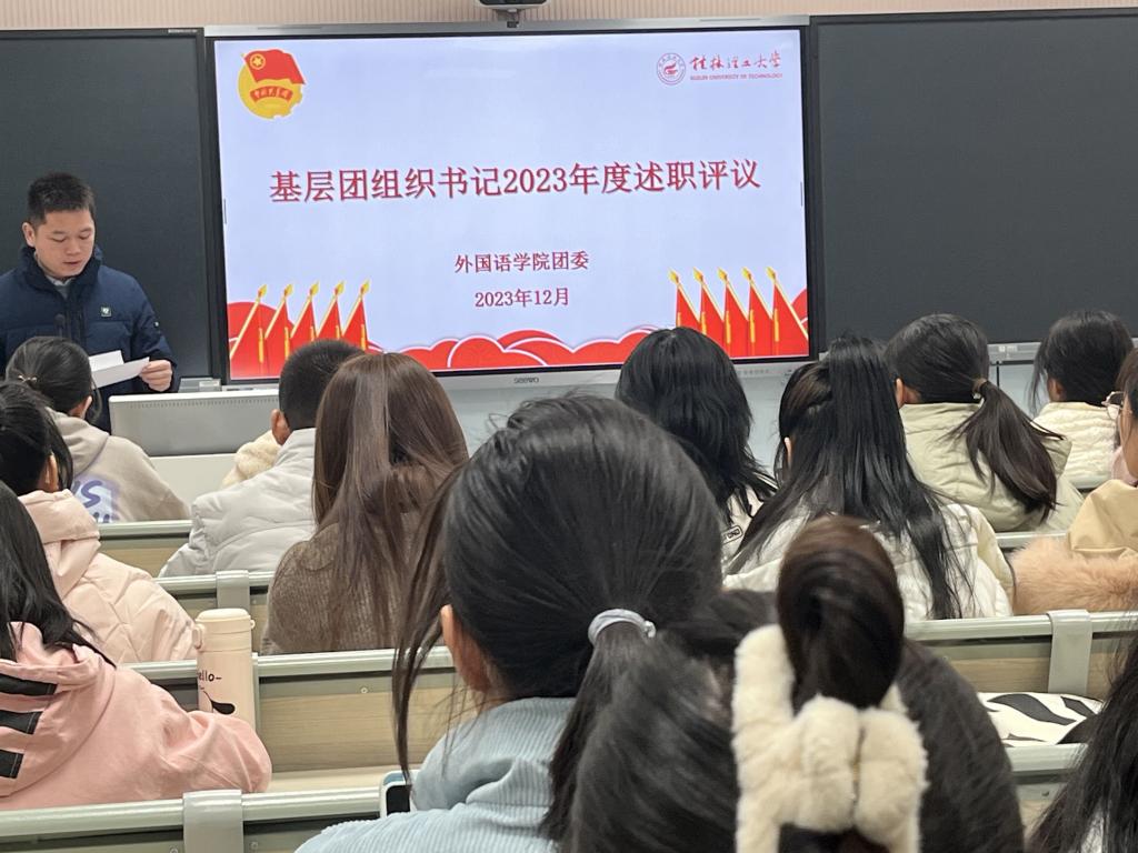 为全面深化共青团改革和建设,进一步压紧压实基层团委工作责任,切实抓好团干部队伍建设,12月25日,外国语学院在雁山校区05209召开2023年基层团支部书记述职大会,学院团委书记舒老师和全体基层团支部书记参加会议,会议由舒老师主持。