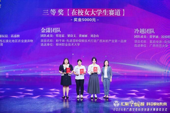 本活动由自治区妇联、自治区人社厅、自治区国资委、自治区总工会、共青团广西区委、自治区科协、广西广播电视台联合主办,现场为一二三等奖、优胜奖等获奖项目颁奖,经过激烈的角逐、层层比拼,环院学子以卓越的表现荣获了三等奖。该团队在比赛中展示了对现实挑战的深刻洞察,对创新的独到理解以及用科技力量解决实际问题的决心。