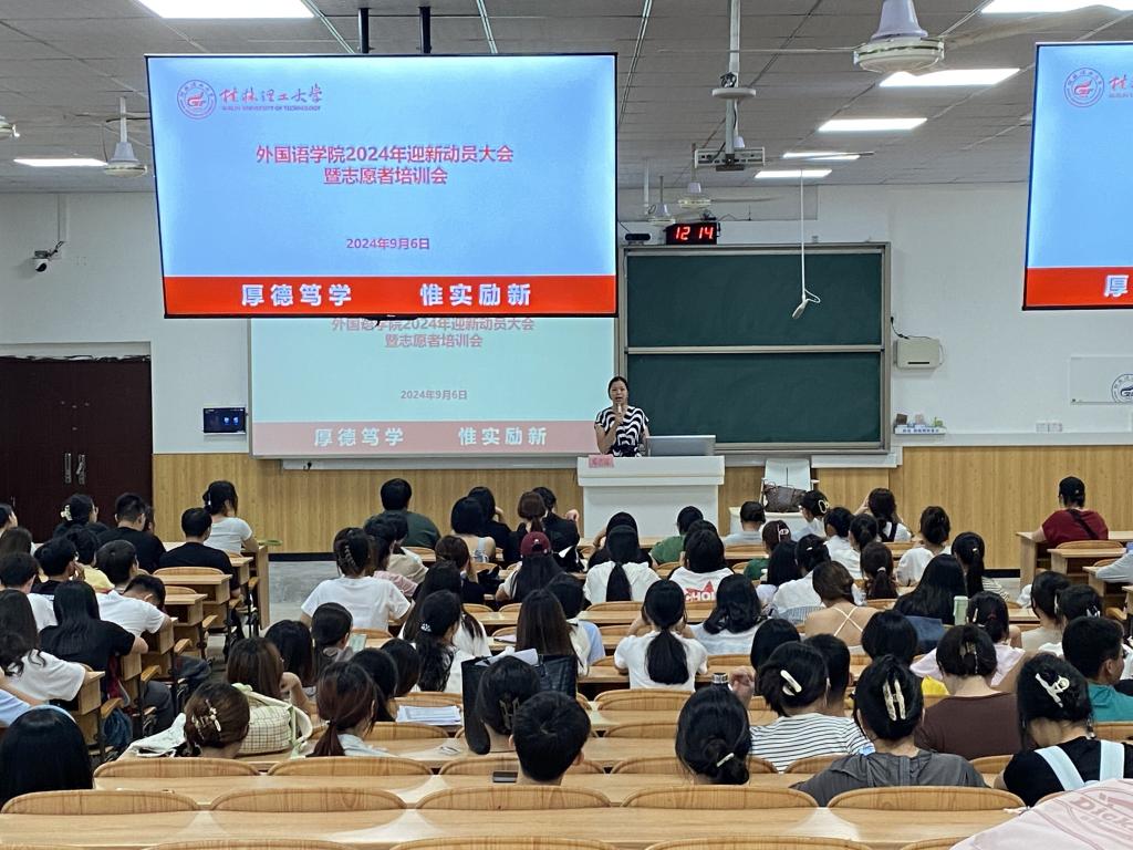 为确保迎新工作能够顺利开展,并进一步提高志愿者服务质量和工作效率,9月6日,学院在雁山校区06105教室召开2024年迎新动员大会暨志愿者培训会,学院党委副书记邓洁琼、全体辅导员、团委、学生会全体成员和迎新志愿者参加会议。