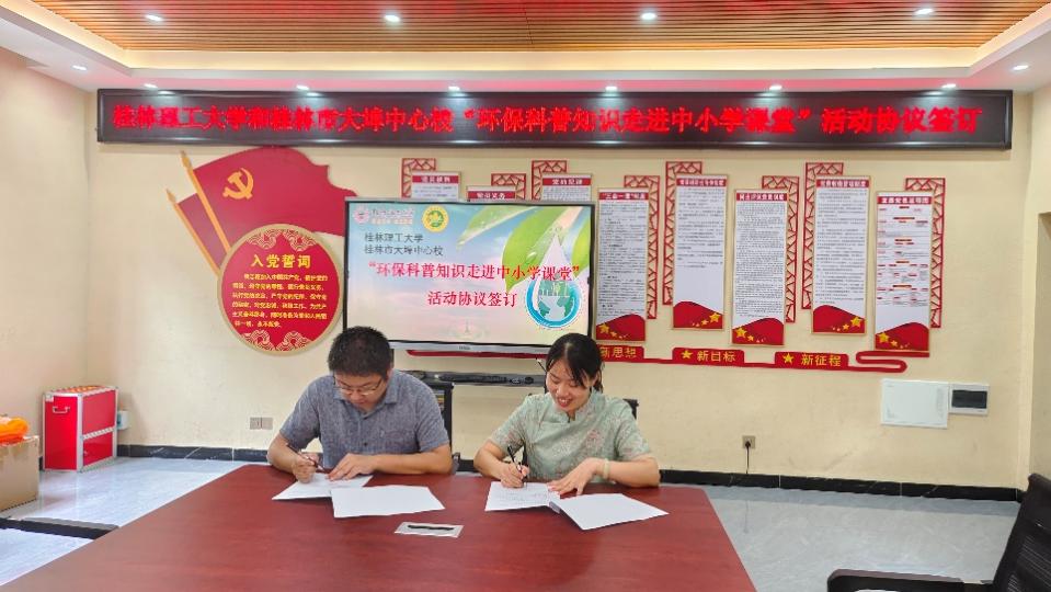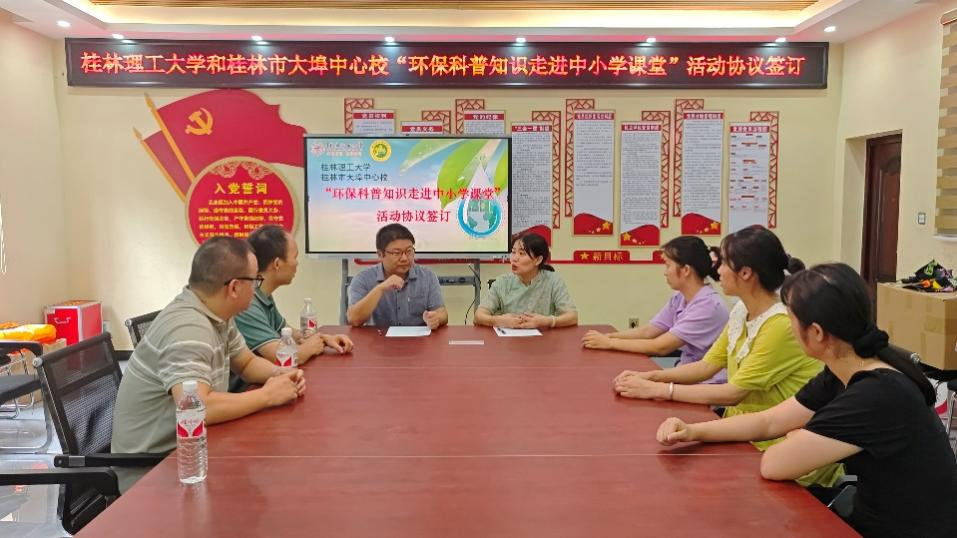 2024年全国科普日的主题是“提升全民科学素质,协力建设科技强国”。为深入贯彻落实习近平生态文明思想,弘扬科学精神,建设环保文化,传播绿色理念,9月19日下午,环境科学与工程学院举办了“环保春天行”系列活动之环保科普进小学。李海翔副院长带领我院师生志愿者团队,前往桂林市大埠中心校开展环保科普宣传教育活动,本次活动共分为科普教育合作交流座谈、环保科普小课堂、环保科普小游戏3个环节。