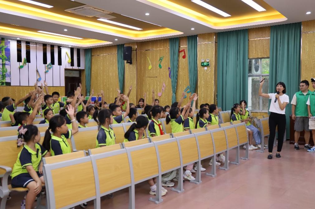 在科普小课堂中,学院老师以“保护漓江,从我做起”为主题,用通俗易懂的语言和生动的表达方式,从漓江的发源、生态环境保护、漓江面临的威胁等方面讲解了相关的环保科学知识,激发了小朋友的浓厚兴趣。在环保知识问答环节,小朋友们热情高涨,纷纷举手参与抢答,这不仅巩固了他们所学的环保知识,也使环保理念和意识在他们心中生根发芽。