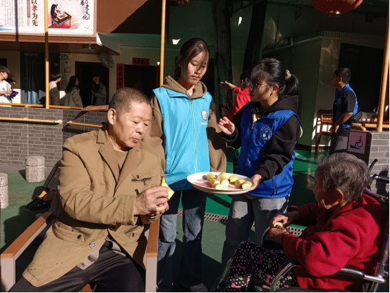 志愿者们为老人们送上水果
