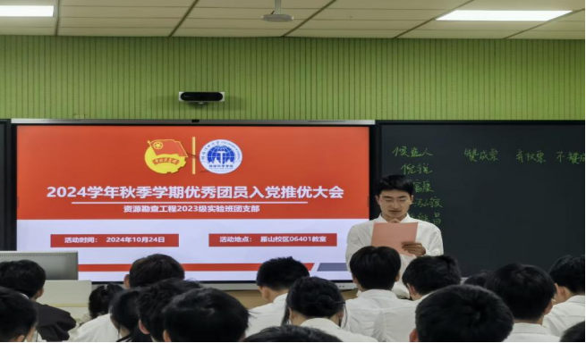资勘23级实验班团支部组织了一场示范性优秀团员入党推优大会。会上,团支部严格遵循了共青团推优入党的相关规定,规范地展示了”推优“工作的流程。