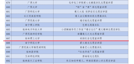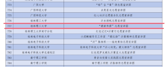 近日,团中央公布了2024年全国大学生遵义会议精神志愿宣讲团与沂蒙精神志愿宣讲团的入选团队名单,材料科学与工程学院“材韵红音志愿宣讲团”、“沂水扬帆志愿宣讲团”、“‘蒙韵传薪’志愿宣讲团”三支团队成功入选,充分展现了桂工学子积极投身志愿服务、传承红色精神的热忱与担当。