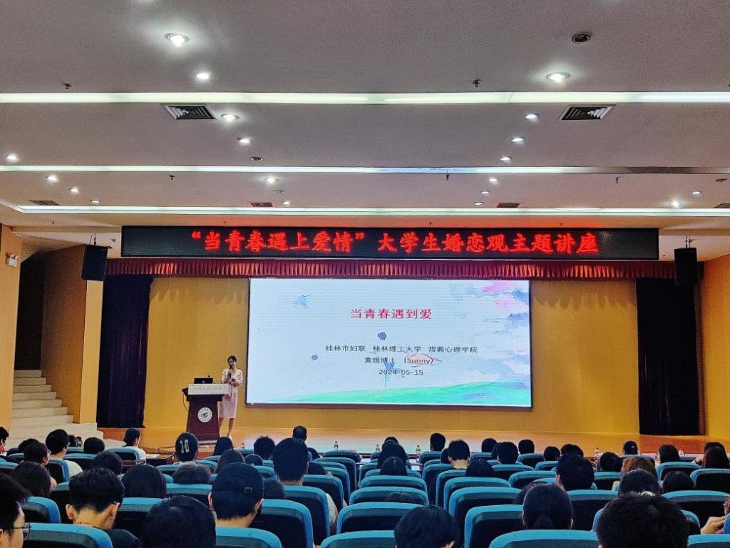 5月15日,旅游与风景园林学院在雁山校区图书馆报告厅举办了“当青春遇上爱情”大学生婚恋观主题讲座,此次讲座由桂林市妇联、学校主办,雁山区妇联和旅游与风景园林学院承办。学校学生工作部(处)副部(处)长周明权,桂林市妇联党组成员、副主席李彬棠,旅游与风景园林学院党委副书记罗义淞、雁山区妇联主席邓雅玲及桂林市妇联、雁山区妇联相关负责同志出席讲座,讲座由国家二级心理咨询师、桂林市第一届家庭教育专家库专家黄煜博士主讲。学校师生200余人到场聆听,学院党委副书记罗义淞主持讲座。