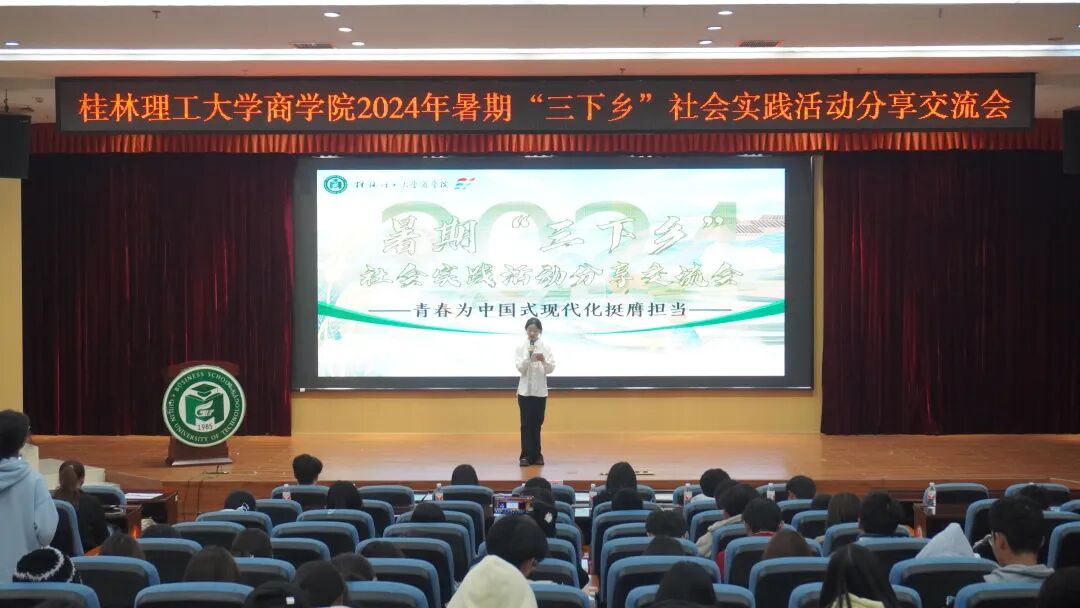 为深入学习贯彻习近平新时代中国特色社会主义思想,引领学生立志做有理想、敢担当、能吃苦、肯奋斗的新时代好青年,我院于12月12日19时在雁山校区图书馆报告厅举办2024年暑期大学生“三下乡”社会实践活动经验分享交流会。学院团委副书记岑甜甜老师、学院2022级辅导员黄佳玲老师、学院2023级辅导员曾友薪老师、各学院社会实践部主要负责人出席本次分享交流会,我院全体学生以线上线下的形式共同参与本次活动。