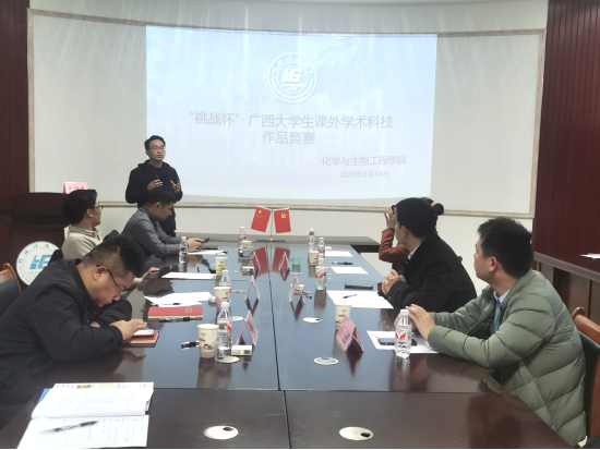 为深入贯彻党的二十大和二十届二中、三中全会精神,认真落实习近平总书记关于科技创新的重要论述,更加充分发挥“挑战杯”竞赛在引领广大青年学生踊跃投身科技创新的牵引力、组织力和影响力。3月14日上午,化学与生物工程学院在12215会议室开展“挑战杯”全国大学生课外学术科技作品竞赛学院选拔赛。学校创新创业专职副院长唐红兵、化生学院党委副书记李少华、beats365亚洲版科技实践部部长王凯浩、环境学院学工组长刘砥、环境学院团委书记孙云龙、外国语学院团委书记舒强、公共管理学院团委书记余东东担任本次竞赛评委。