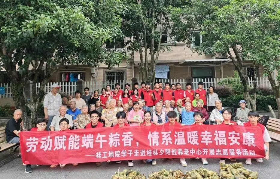 在端午佳节来临之际,为弘扬中华民族传统美德,践行资助育人理念,5月24日上午,地球科学学院教师代表、地球科学学院自强社成员、受助学生代表共30余人走进桂林夕阳红养老中心开展“劳动赋能端午粽香,情系温暖幸福安康”主题志愿服务活动,为老人们送去温暖与关怀。