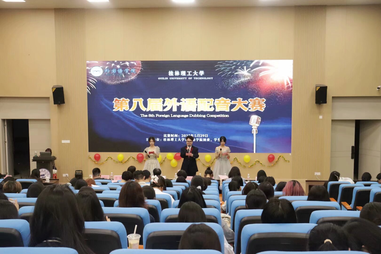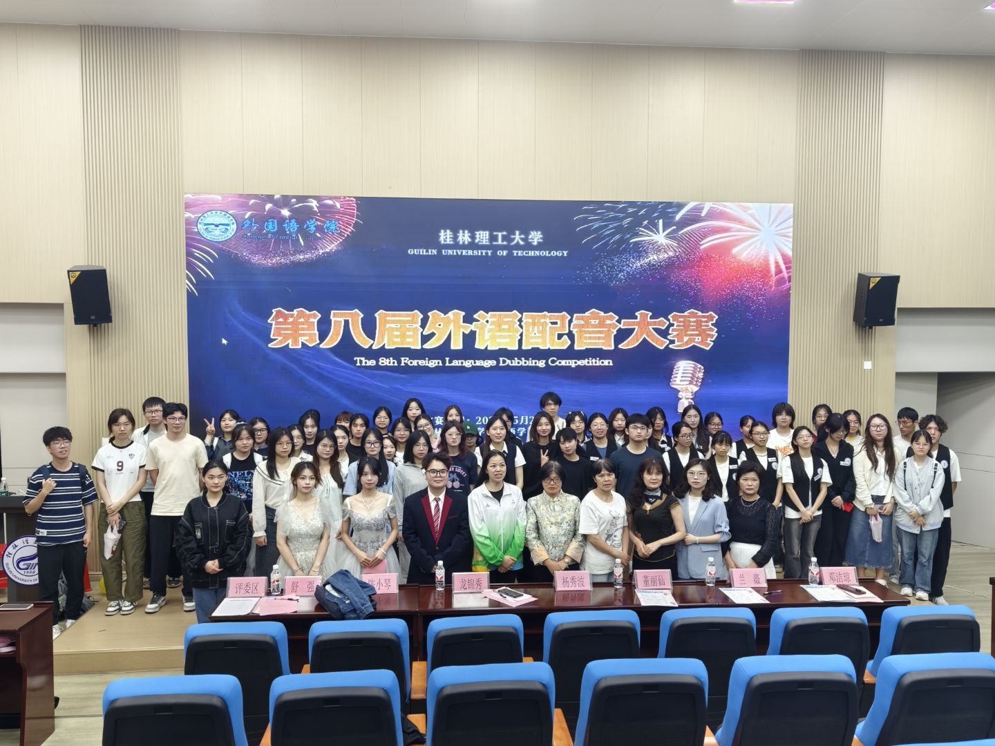 为进一步浓化校园文化活动氛围,为同学们搭建施展自我的广阔平台,5月29日晚,外国语学院在艺术学院报告厅举行第八届外语配音大赛决赛。外国语学院党委副书记邓洁琼出席本次活动。各入围决赛团队、兄弟学院文艺部负责人、学生共计200余人参加本次活动。