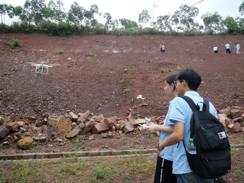 实践团成员运用无人机对地灾风险点进行勘查