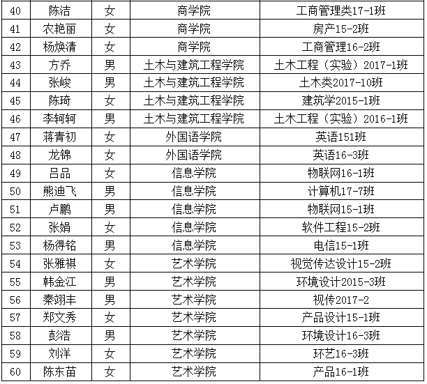 经各学院、各校级学生组织推荐,学校国际交流处、团委、学工处审核,拟定以下60名师生参与我校2018年“桂港两地情”文化交流团项目。具体名单如下: