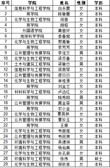 根据笔试情况,按招聘人数1:1.5的比例确定面试资格人员名单,名单如下(按姓氏拼音首字母排序):