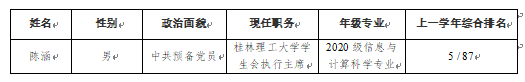 根据《关于选拔广西壮族自治区学生联合会2023—2024年度驻会执行主席的通知》要求,经自主申报、学院推荐、beats365亚洲版选拔审核,学校同意,拟推荐以下同学为广西壮族自治区学生联合会2023—2024年度驻会执行主席推荐人选。