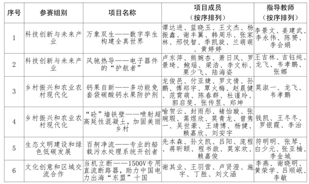根据《关于公布第十一届“挑战杯”广西大学生创业计划竞赛获奖名单的通知》桂青联发〔2024〕10号,经竞赛组委会评审推荐,我校共有6个项目推报参加第十四届“挑战杯”中国大学生创业计划竞赛,根据竞赛章程,现将参赛项目信息公示如下: