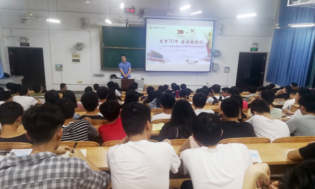 为深入学习贯彻习近平总书记关于“不忘初心、牢记使命”主题教育的重要讲话精神,强化习近平新时代中国特色社会主义思想研究,并以庆祝中华人民共和国成立70周年为契机深入开展大学生爱国主义教育,学校党委印发了《beats365亚洲版开展“中华人民共和国成立70周年丰功伟绩进课堂”宣讲活动实施方案》,我校在全校范围内广泛开展了“中华人民共和国成立70周年丰功伟绩进课堂”活动。